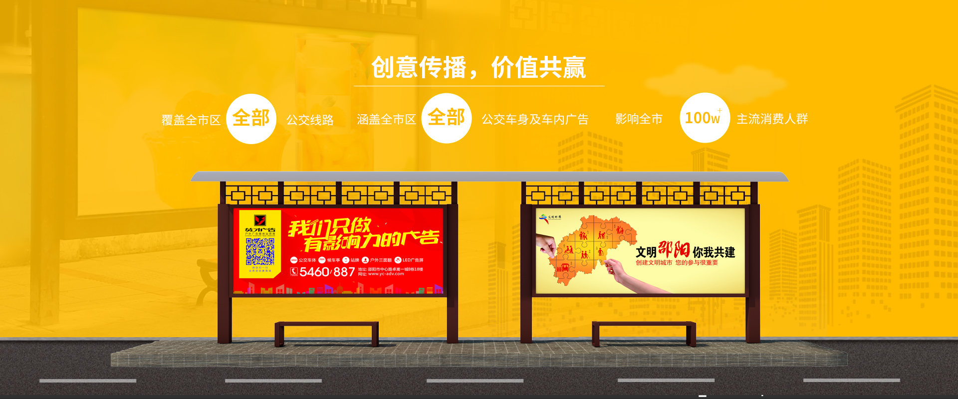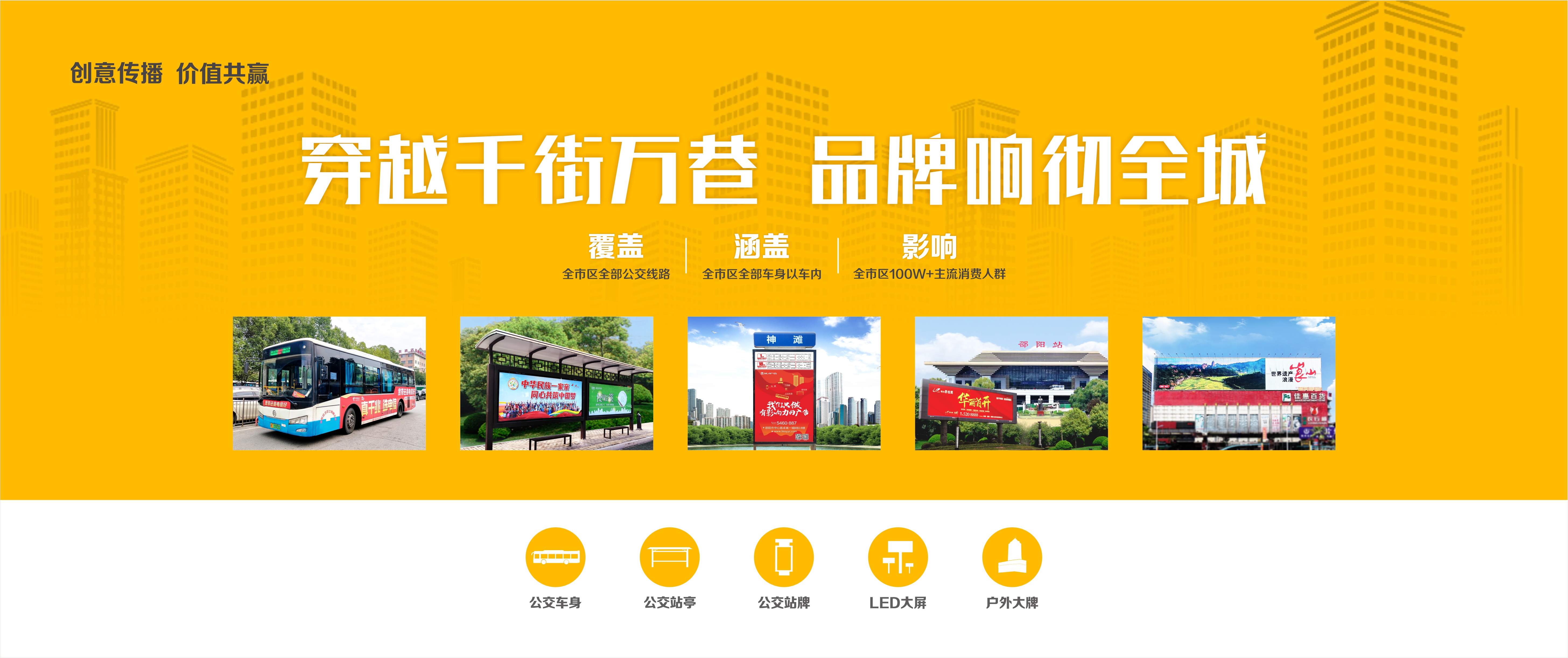 邵陽(yáng)市英才廣告裝飾有限責(zé)任公司成立于1997年,是一家運(yùn)營(yíng)邵陽(yáng)市區(qū)所有公交媒體,是一家集媒體運(yùn)營(yíng)、廣告制作、創(chuàng)意設(shè)計(jì)、和營(yíng)銷(xiāo)策劃為一體的專(zhuān)業(yè)戶(hù)外媒體傳播平臺(tái)。公司擁有邵陽(yáng)城區(qū)公交車(chē)體、候車(chē)亭牌、站牌燈箱的發(fā)布經(jīng)營(yíng)權(quán),豐富的媒體資源平臺(tái)構(gòu)建了以車(chē)身、車(chē)內(nèi)框、車(chē)?yán)?、候?chē)亭、站牌為主體,以三翻面、大型LED電子屏為延伸的優(yōu)質(zhì)媒體網(wǎng)絡(luò)。20年來(lái)的發(fā)展中,公司堅(jiān)持“創(chuàng)意傳播,價(jià)值共贏(yíng)”的理念,立人才之德,樹(shù)企業(yè)之信,以助推社會(huì)責(zé)任、客戶(hù)利益和公司發(fā)展的共享共擔(dān)共贏(yíng)為己任,憑借科學(xué)的理念、優(yōu)質(zhì)的媒體、精良的工藝和團(tuán)隊(duì)成為市區(qū)廣告行業(yè)優(yōu)質(zhì)企業(yè)。 市場(chǎng)是我們成長(zhǎng)的航向,客戶(hù)是我們動(dòng)力的源泉,品牌是我們逐夢(mèng)的基石,品質(zhì)使我們走向新的起點(diǎn),二十年的市場(chǎng)磨煉,我們將以更真誠(chéng)、更專(zhuān)業(yè)、更成熟的姿態(tài)服務(wù)客戶(hù),開(kāi)拓市場(chǎng),為打造省級(jí)專(zhuān)業(yè)戶(hù)外媒體平臺(tái)和企業(yè)的持..
